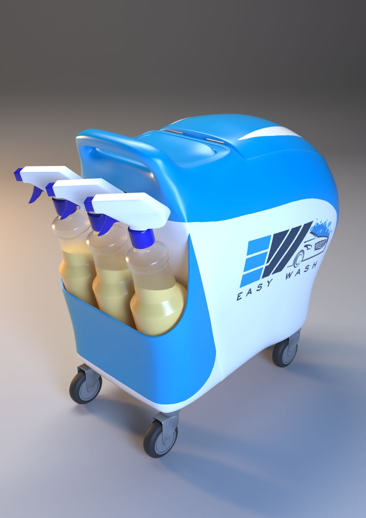 A portable car washing cart with 2 versions a large one with a large water tank for commercial use, and a smaller more for consumer use. I was tasked with redesign their carts and find design solutions for the problems that the older design was suffering from.